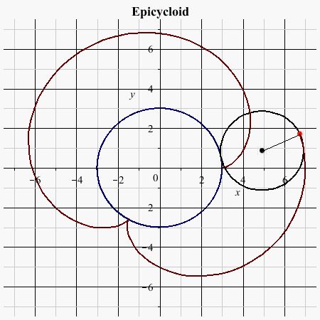 This next app allows the student to user sliders, buttons and checkboxes to adjust the parameters of an epicycloid, hypocycloid, epitrochoid or hypotrochoid, the equations for which are given by: