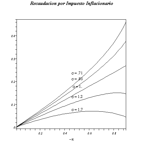 De esta gr?fica se desprende que cuando  la elasticidad de sustituci?n entre consumo presente y futuro es mayor a la unidad, 1 < sigma ,  habr? una tasa de inflaci?n ?ptima, por encima (o por debajo) de la cual el gobierno recaudar?a menos.