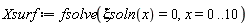 The surface value (0) will be found between x = 0 and x = 10. Calculate the value and assign it to Xsurf: