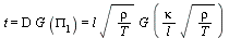 Applying the Buckingham Pi Theorem, we obtain the dependency , with an unknown function F.  In order to gain further information on F, we will need to invoke experimental data.  Before doing that, we will simplify our equation by making a few assumptions.  Since we are testing the validity of the rule of thumb, we will first assume that we'll keep the oven temperature constant at 350 ?F.  Also, it would be reasonable to assume that the thermal conductivity and density of turkeys does not vary much from one bird to the next.  The final assumption we'll make is that the mass of a turkey (M) is proportional to the volume of the turkey.  Since volume is in and mass is in , we can make the substitution .  Making the substitution will give us .  This relationship is rather useless, since all it shows is that is a function of .  Looking at the equation, we know that is dimensionless, and temperature, density and thermal conductivity are kept fixed.  Only the variable remains, and we have to proceed by testing simple hypotheses for