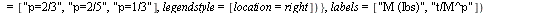 Because we do not have any information regarding the functions , , and , we will just test the models under the assumptions that these functions are constant.  We will now plot the dependence of against the weight where p=2/3, 2/5, 1/3 respectively, along with a line of best fit.