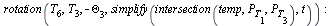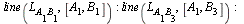 Triangle is brought into coincidence with triangle by a rotation of about an axis that is through vertex and normal to the plane containing .  The angle of rotation is the angle between any pair of corresponding sides.  Hence, we must obtain a pair of edges as geom3d lines, and for this, we need the vertices of triangle as geom3d points.  Actually, all we need is the vertex and the lines through and , and and .  Recall that the first such line was obtained in Step 2 of Method 1, but we repeat that calculation here for the convenience of the reader.
