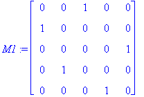 > M1:=Matrix([[0, 0, 1, 0, 0], [1, 0, 0, 0, 0], [0, 0, 0, 0, 1], [0, 1, 0, 0, 0], [0, 0, 0, 1, 0]]);