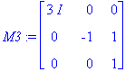 > M3:=Matrix([[3*I,0,0],[0,-1,1],[0,0,1]]);