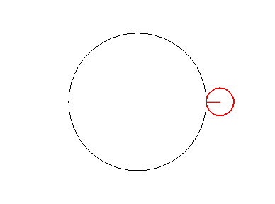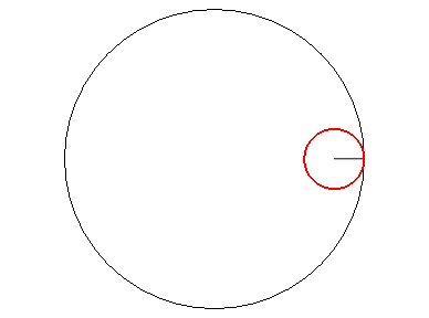My work began with a rolling circle on the x-axis. We could define all the parameters of this animation with analytical expressions. In this case, the position of a point of the wheel of radius 1 at the time "t" is given by . We could see two different equation in each coordinates : one for the motion of the center of the wheel, e.g. , and one for the rotation of the wheel, e.g. . The complete trajectory is thus given by .