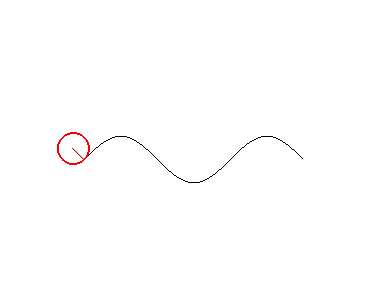 > traj:=proc(r,C,s,T,res) #(Radius, Param.equation, Position(+-1), Time, Resolution) local totale,tt,CC,dc,dtc,dist,ddist,ctct,tc,i,j,k,a; #curve and speed CC:=[subs(t=tt,op(1,C)),subs(t=tt,op(2,C))]: dc:=diff(CC,tt): #norm of the speed ddist:=unapply(sqrt(op(1,dc)^2+op(2,dc)^2),tt); #array of the total displacement at t*T/res dist:=array(0..res);dist[0]:=0; for k from 1 to res do dist[k]:=dist[k-1]+evalf(int(ddist(k*T/res),tt=(k-1)*T/res..k*T/res)): od: #coordinates of the center of the wheel at t*T/res tc:=[ unapply( op(1,CC)-s*r*op(2,dc)/ddist(tt),tt ), unapply( op(2,CC)+s*r*op(1,dc)/ddist(tt),tt ) ]: #coordinates of the contact point at t*T/res ctct:=unapply(CC,tt): #initial angle a:=-s*(Pi-linalg[angle]( [op(1,tc(0)),op(2,tc(0))]-ctct(0) ,[0,-1])): #animation totale:= seq( plots[display]({ #road plot([op(CC),tt=0..T],color=black), #wheel plot([ op(1,tc(j*T/res))+r*cos(i), op(2,tc(j*T/res))+r*sin(i), i=0..2*Pi],color=red,thickness=2), #distance center/contact point plot([ [op(1,tc(j*T/res)),op(2,tc(j*T/res))], [op(1,ctct(j*T/res)),op(2,ctct(j*T/res))] ],color=grey), #center of the wheel trajectory plot([op(1,tc(tt)),op(2,tc(tt)),tt=0..(j+.01)*T/res],color=grey), #radius of the wheel plot([ [op(1,tc(j*T/res)),op(2,tc(j*T/res))], [op(1,tc(j*T/res)),op(2,tc(j*T/res))]-r*[sin(a+s*dist[j]/r),cos(a+s*dist[j]/r)] ],color=red,thickness=2), #trajectory of the point on the wheel seq(plot([ [op(1,tc(m*T/res))-r*sin(a+s*dist[m]/r),op(2,tc(m*T/res))-r*cos(a+s*dist[m]/r)], [op(1,tc((m+1)*T/res))-r*sin(a+s*dist[(m+1)]/r),op(2,tc((m+1)*T/res))-r*cos(a+s*dist[(m+1)]/r)]],color=tan,thickness=2),m=0..(j-1)) }) ,j=0..res): plots[display](totale,insequence=true,scaling=constrained,axes=none); end: