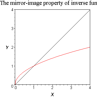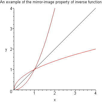 This graph shows the mirror-image property of inverse functions.  Notice how Maple assigns different colors to the different members of the list.  You can change the colors by adding a "color" argument to the command.