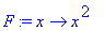 In ordinary math texts, the above would be expressed as F(x) = x^2 .  In other words,  F:= x-> x^2 is the Maple syntax for defining F to be the squaring function.