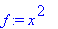 The results of any command can be stored in a variable for later use by using ":=", and it is usually a good idea to do so.  In this case, we wish to plot the function f(x) = x^2 .   I will take the expression x^2  and assign it to the variable f.