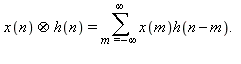 The display on the right is the expansion of the formula to evaluate the n-th term of the convolution based on the equation `⊗`(x(n), h(n)) = sum(x(m)*h(n-m), m = -infinity .. infinity)
