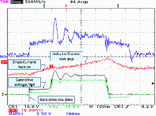 Figure 16. Lab test graph showing MOSFET turn on followed by inductor current ramp.