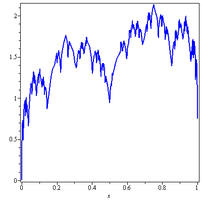 Fractals have been discovered by Mandelbrott in 1970s [1], [9]. They are objects having very complicated geometrical shapes impossible to describe with the help of classical Euclidean geometry. Fractals are selfsimilar objects. It means that parts of them are similar to the whole objects. One can generate fractals iteratively using very simple set of rules defined by the so-called IFS (Iterated Function System). More information about fractals can be found eg. in classical books [1], [9]. Below, following [8], [10], we present an approach for rendering fractal curves that are selfsimilar solutions to some functional equation. That functional equation has been investigated in 1950s independently by two mathematicians and, to honour them, is named as the Read-Bajraktarevic equation. The Read-Bajraktarevic equation has the following form:where are functions and is a closed interval in . We are looking for a function satisfying (1) with given functions and .Following [8], [10] we recall the theorem:TheoremLet I be a closed interval in R. Assume that Further, assume that there exists a constant r, 0 < r < 1 such that for every x in I, is satisfied:Then the operator Φ:The operator Φ is the so-called Read Bajraktarevic operator. From the well-known Hahn Banach Fixed Point Theorem it follows that there exists a unique fixed point (x) - the solution to the equation (1), that may be obtained as a limit of the following iterations: starting from any function (x).The sequence of iterations (2) is convergent to (x) in the following sense:In the next section examples of Read-Bajraktarevic equations will be presented together with their solutions. Observe that in considered examples all assumptions about functions v and b are satisfied.