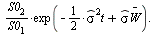 `*`(S0[2], `*`(exp(`+`(`*`(`+`(r, `-`(`*`(`/`(1, 2), `*`(`^`(sigma[2], 2))))), `*`(t)), `*`(sigma[2], `*`(W[2])))))) (1.1)
