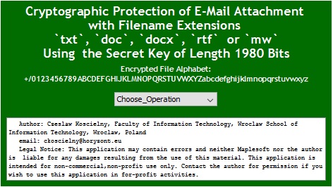 Cryptographic Protection of E-Mail Attachment with Filename Extensions `txt`, `doc`, `docx`, `rtf` or `mw` Using the Secret Key of Length 1980 Bits