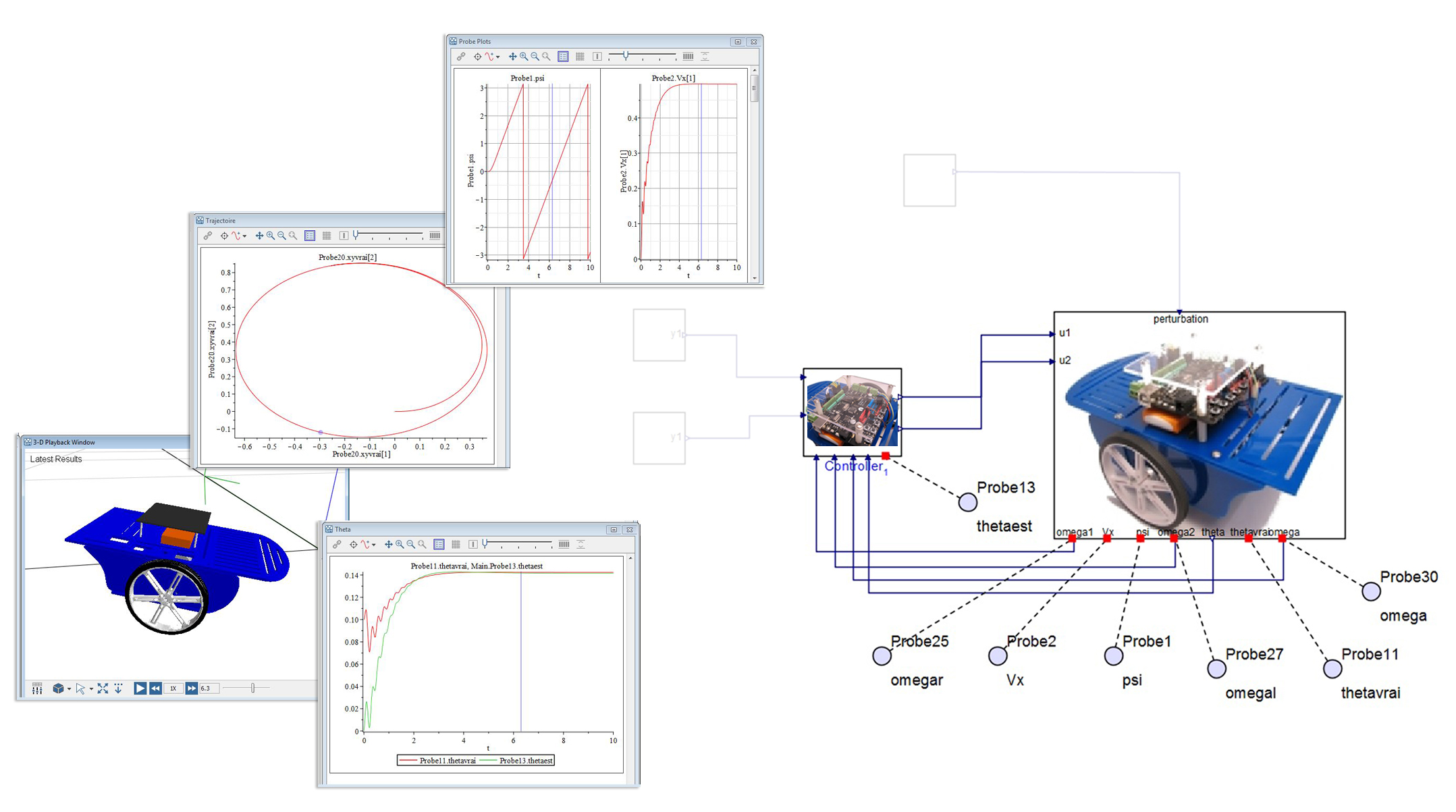 Due to the advantages provided by Maple and MapleSim, 3Sigma was easily able to design, test, and build the Gyropode robot. “Using the powerful combination of Maple and MapleSim, we were able to create a high-fidelity model that would have been too difficult to develop if we had to perform all the calculations by hand,” says Gachadoit. “As a result, we were able to achieve considerable time savings in the development of our gyropode model, designing it in a fraction of the time normally required for such a complex system, and with much greater accuracy. As well, the symbolic nature of the underlying equations gave us the ability to provide students with the means to easily modify a variety of parameters in the controller and see the change in how the robot actually behaves, which helps them deepen their understanding of the factors going into robotic design.”