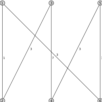 C6Graph 1: an undirected weighted graph with 6 vertices and 6 edges