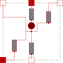 All Thermal Conductor components are connected to the Heat Capacitor. The port_center  is directly connected to the Heat Capacitor.