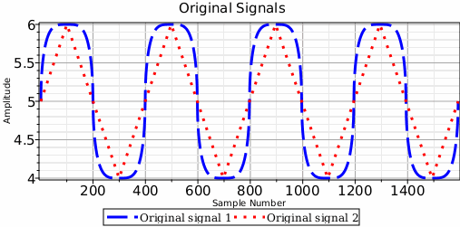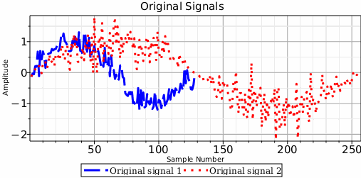 signal2: Vector, of size n and datatype float[8] or complex[8], containing the second original signal Y.