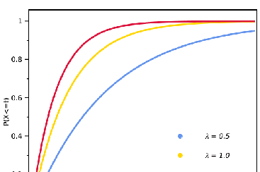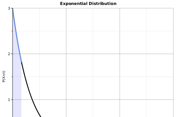 Change the intensity of the event l and time t to observe the change in the exponential distribution and the corresponding probability value: