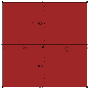 The calling sequence SetName(n) where SetName is one of Simplex, Hypercube, UniversalSet or EmptySet creates an n-dimensional polyhedral set with the default coordinate names.  Alternatively, SetName(n, varname) can be used to create sets whose coordinates are [varname__1,varname__2varname__n] or the coordinates can be specified explicitly using SetName(coords).