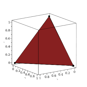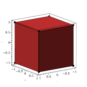RandomSolid generates a bounded polyhedral set with nv vertices by choosing random points near the surface of the n-sphere.  If the set's coordinates are not specified using RandomSolid(nv, optcoords), then the dimension of the space must be given with the call sequence RandomSolid(nv, n).  The number of vertices nv must be greater than the dimension of the space in order to generate a solid.
