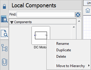 In the Local Components tab (), right-click (Control-click for Mac) the subsystem or custom component definition that you want to remove. The context menu appears.