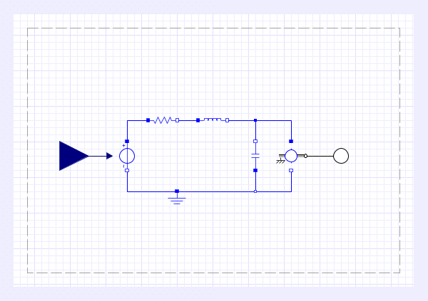 In this view, a broken line indicates the subsystem boundary. (If there is no dotted line surrounding the subsystem, you can change the view as described in Hiding and Displaying the Subsystem Boundary.)  You can edit the connection lines and components within the boundary and add subsystem ports.