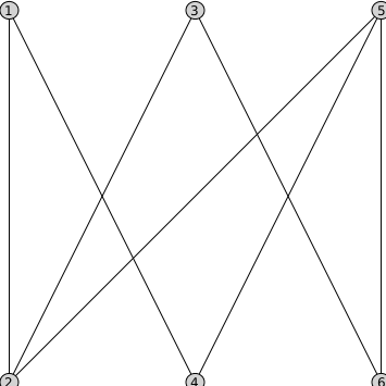GGraph6,1,2,1,4,2,3,2,5,3,6,4,5,5,6