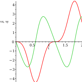 odeplotsol,t,vxt,t,vyt,t=0..2