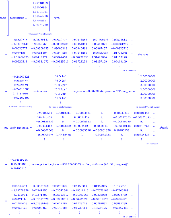 Now we can execute the Variational2RDM command or another command using the same method and options without recomputation (note that the command executes instantly)