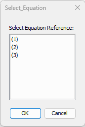Select a reference and click OK. The reference is the equation label within that document. The output from the reference is inserted into your document.