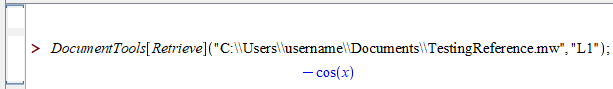 Another way to reference one document from another is by using a Maple workbook.  A Maple workbook is a way to assemble multiple files together into a single file.  It makes it easy to reference data or calculations from an attached file, including from another Maple document.  For details, see The Workbook File Format.