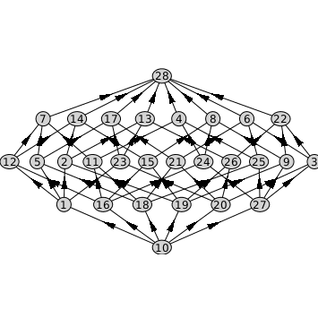 If we omit the setcoordinates=false option, Maple computes a layout that respects the grading of poset10.
