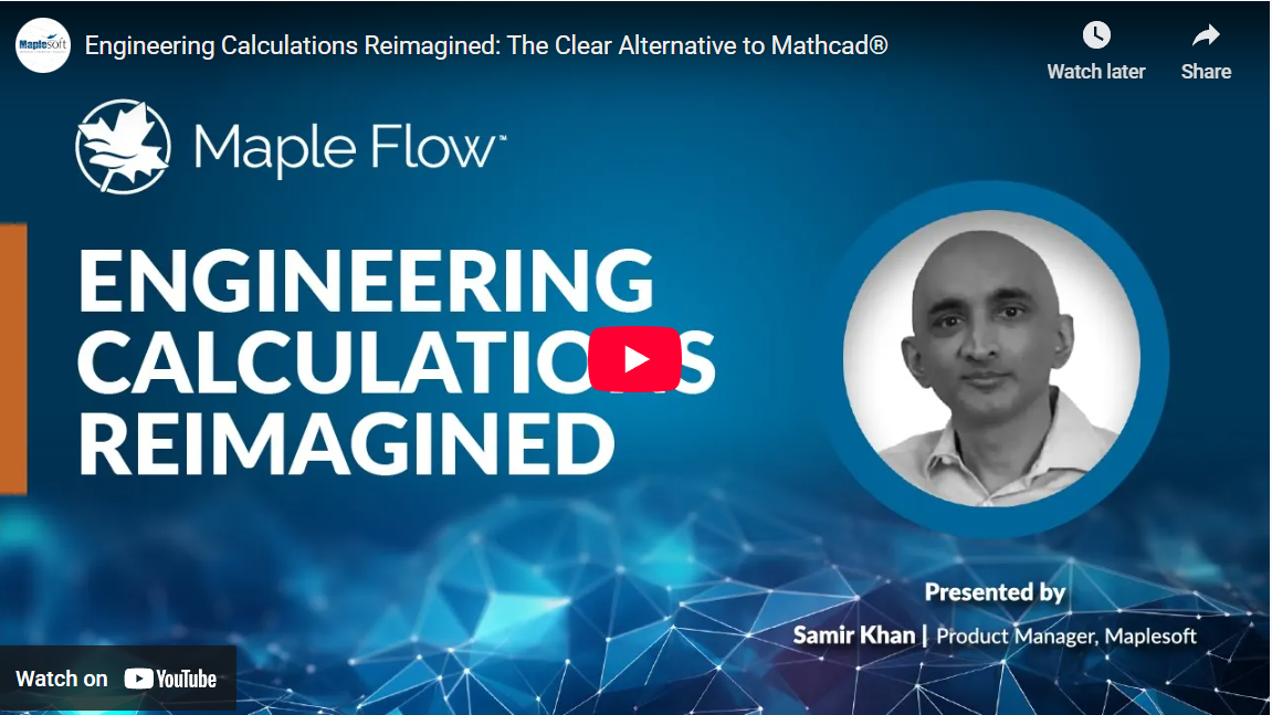 In this video, you’ll see how the latest release of Maple Flow adds smarter productivity features, including automatic unit and equation parameter checks, flexible formatting for clearer worksheets, and new connectivity options that make collaboration smoother and more effective.